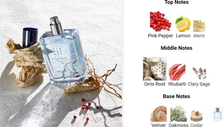 نتهای مرکباتی روشن از لیمو، المی تازه و فلفل سورتی تند رایحه کلاسیک را با ملایمت القا میکنند تا عطر را با حسی شاداب باز کند