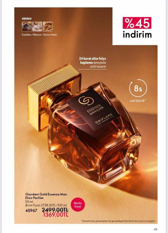 این عطر در شیشهای دستساز و متمرکز ۵۰ میلیلیتری عرضه شده و اولین از نوع خود در مجموعه اوریفلیم است.